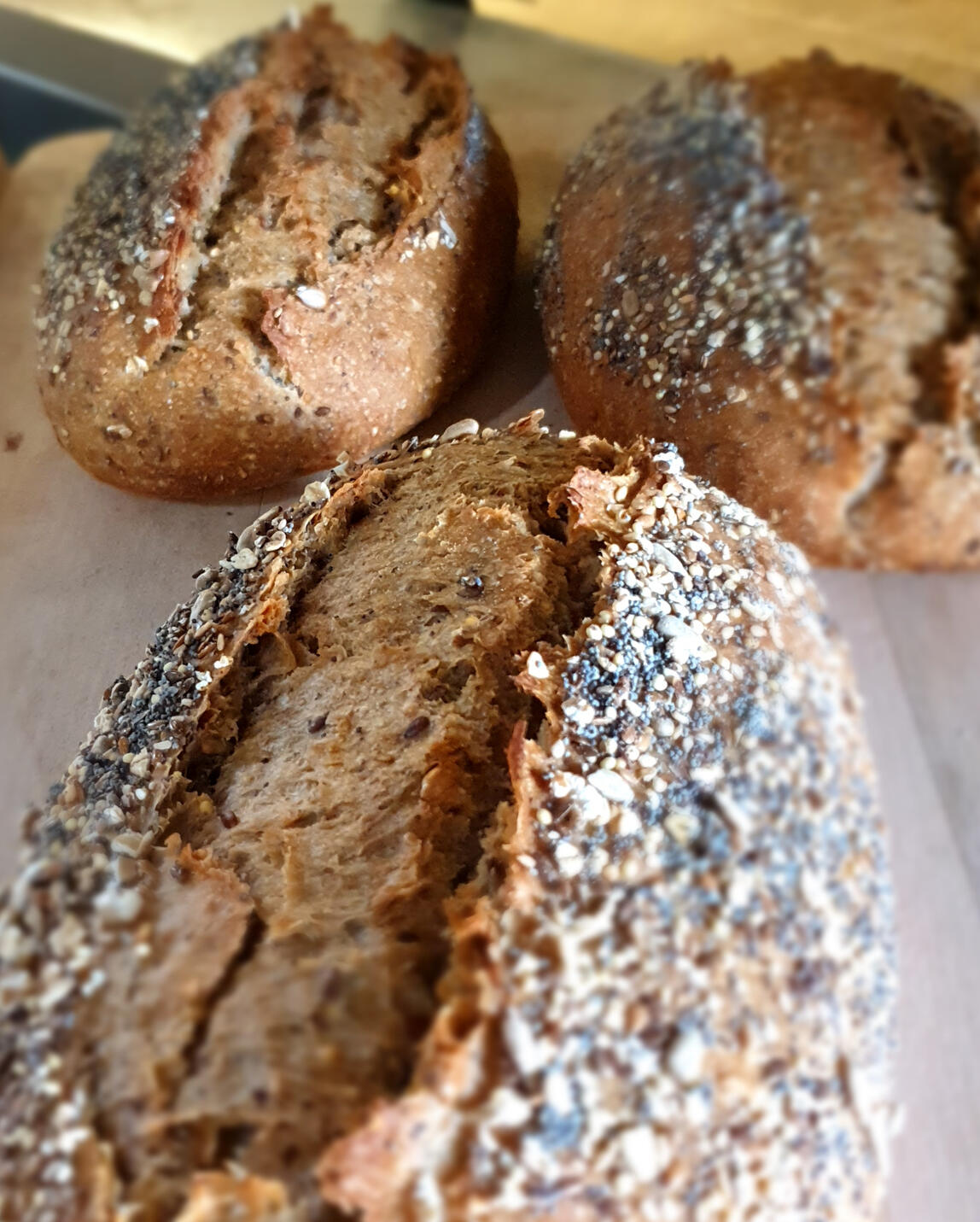 en minéraux et en fibres- le 6 Graines: un heureux mélange de graines de lin brun et doré, tournesol, pavot, sésame et millet...- le Tournelins: des graines de lin brun et doré, de tournesol, et une pâte semi-complète.- le Graines de courge: retrouvez les saveurs gourmandes des graines torréfiées sur la croûte de